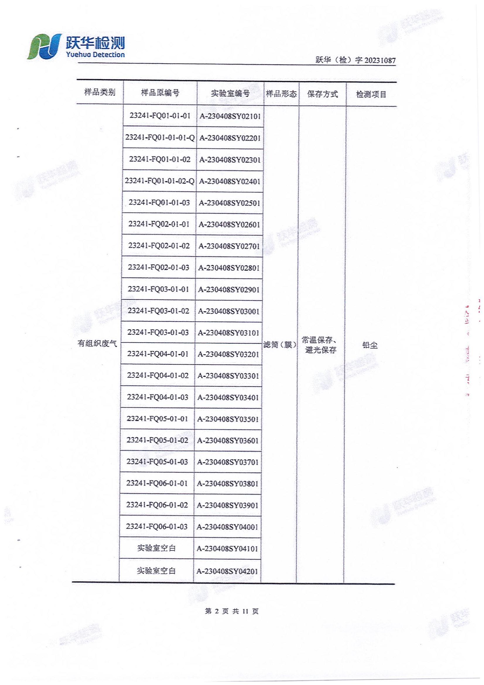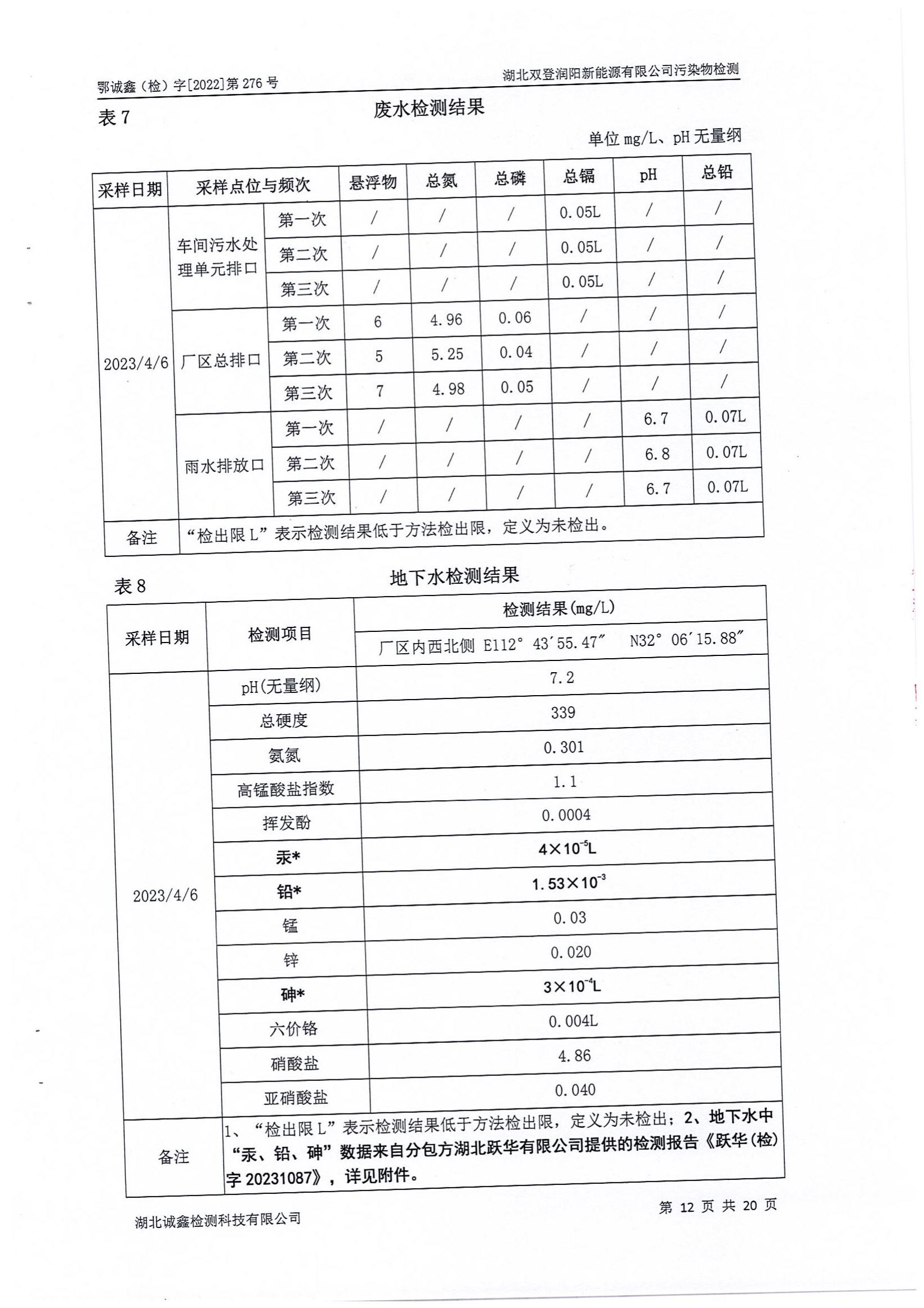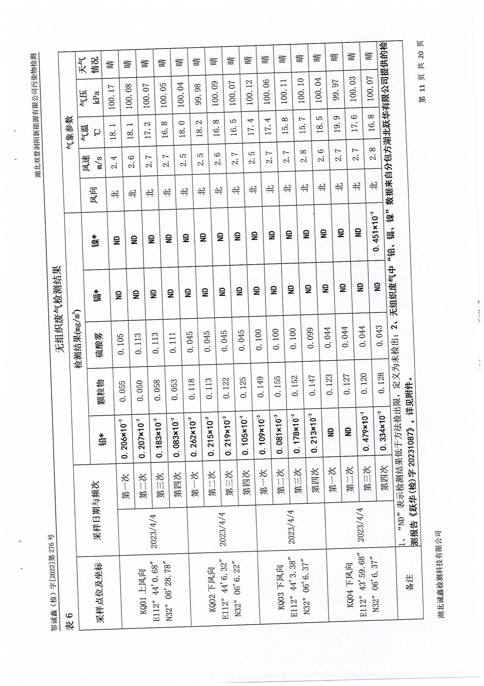 2023年4月份 276 湖北利来w66润阳新能源有限公司污染物检测