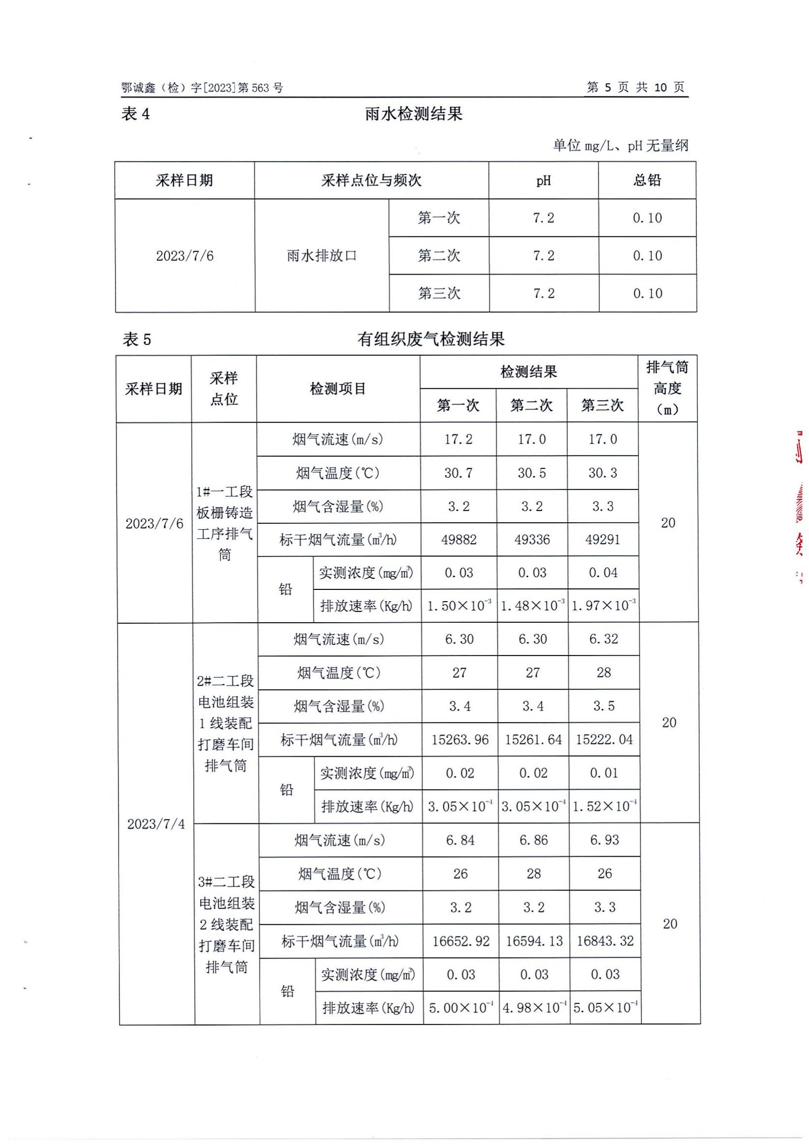 2023年7月份 563 湖北利来w66润阳新能源有限公司污染物检测