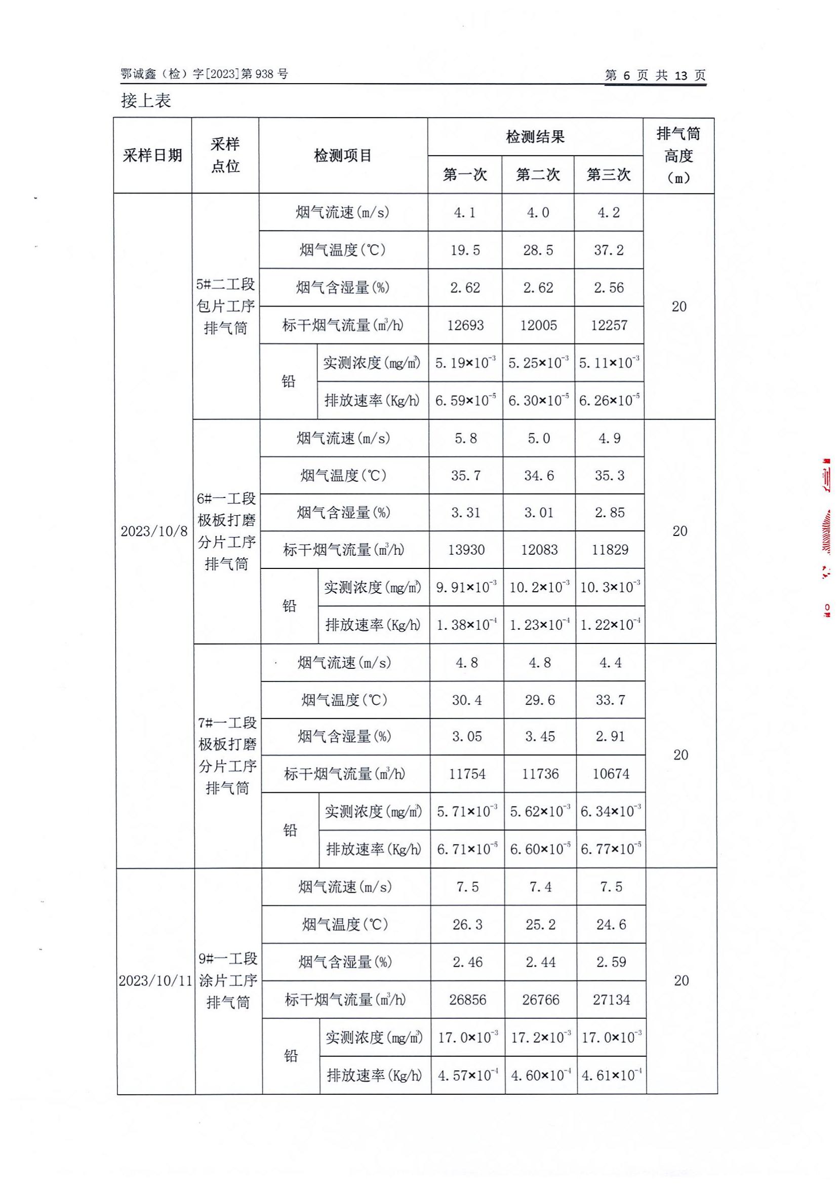 > 2023年10月份 938 湖北利来w66润阳新能源有限公司污染物检测