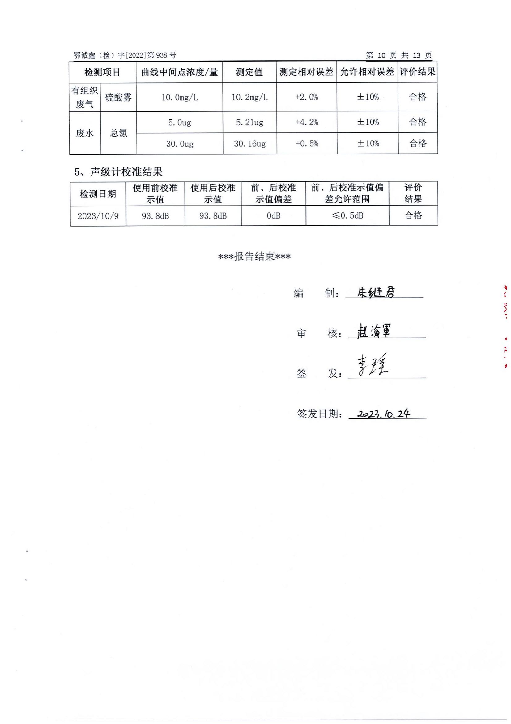 2023年10月份 938 湖北利来w66润阳新能源有限公司污染物检测